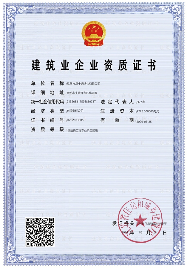常熟市常豐鋼結構有限公司,位于風景秀麗的常熟市支塘鎮(204國道旁)毗領蘇嘉杭高速公路,水陸交通十分便利。